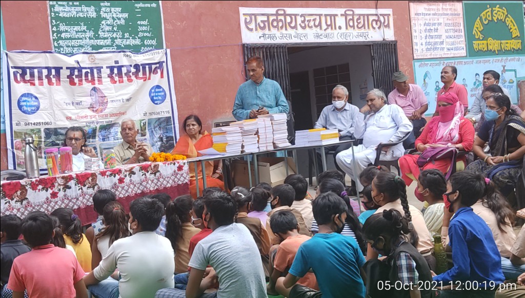 - व्यास सेवा संस्थान, शिक्षित समाज निर्माण के उद्देश्य से सरकारी स्कूलों मे पढ़ने वाले गरीब बच्चों को कॉपी, किताब, यूनिफ़ोर्म आदि उपलब्ध कराती है। व्यास सेवा संस्थान अभी 22 स्कूलों के छात्र-छात्राओं को सहयोगी पाठ्य सामाग्री से सहायता देती आ रही है। अभी तक संस्थान द्वारा लगभग 60 हजार छात्र-छात्राओं को सहायता दी जा चुकी है।